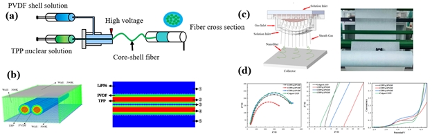 锂离子电池具有单位容量储能量大、温度窗宽、充放电循环寿命长等优点,在储能市场上处于领先地位。隔膜是确保电池安全的关键部件。然而,商用聚烯烃隔膜的热稳定性和可燃性较差,对其安全性能构成了严重威胁。因此,在不降低电化学性能的情况下,提高电池分离器的安全性具有重要意义。静电纺丝技术是制备纳米纤维隔膜的常用方法,由于其原料来源广泛、制备简单、成本低而受到人们的广泛关注。但是,由于静电纺丝射流之间的干扰,具有核壳结构的高性能锂电池分离器的稳定、可控、批量制备仍然非常困难。