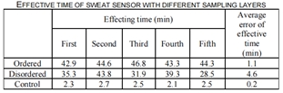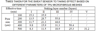 表3. 基于各组TPU微纤维网的汗液传感器检测生效时间